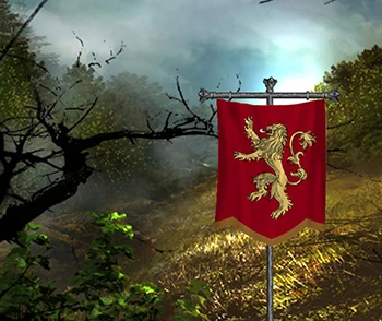 Hailing from Casterly Rock, and another branch in Lannisport is one of the seven Great Houses known as the Lannisters. Most often, Lannisters are known, if not by their sigil, but by their looks. Hair of spun gold and emerald eyes. The Lannister sigil is recognizable by its rearing golden lion upon a crimson banner.